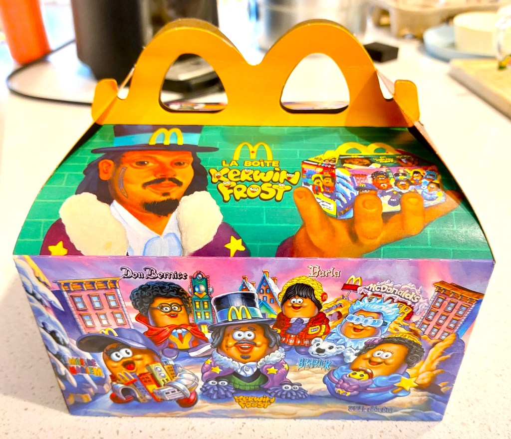 - Le design de la boîte, conçue par l’artiste Kerwin Frost, les jouets et les cartes à son effigie sont à collectionner