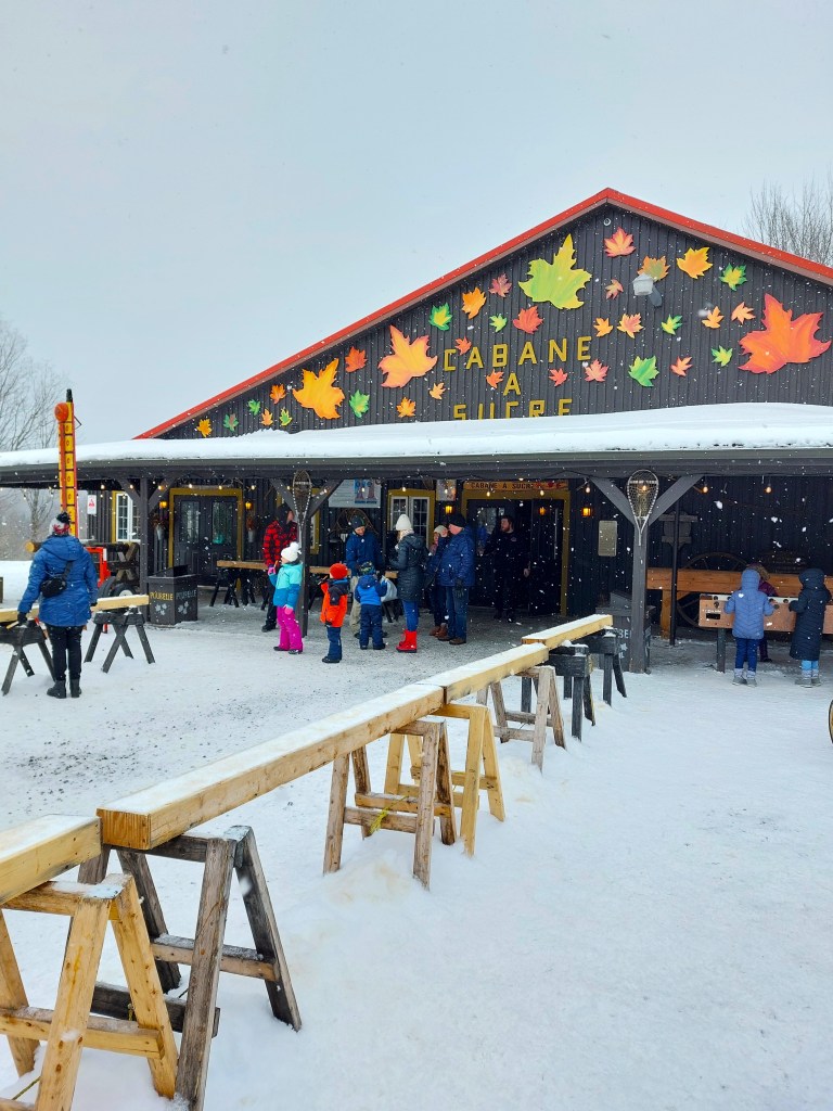 - L’ambiance extraordinaire de la cabane à sucre, grandes tablées, partage, rires et chants rythment le repas