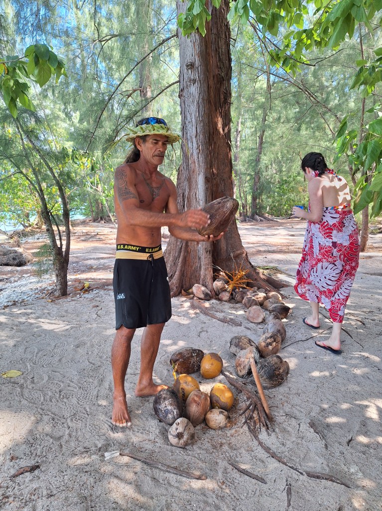 - Pratiquer l’épluchage et l’ouverture de la noix de coco et se rafraîchir à l’eau de coco directement à la source