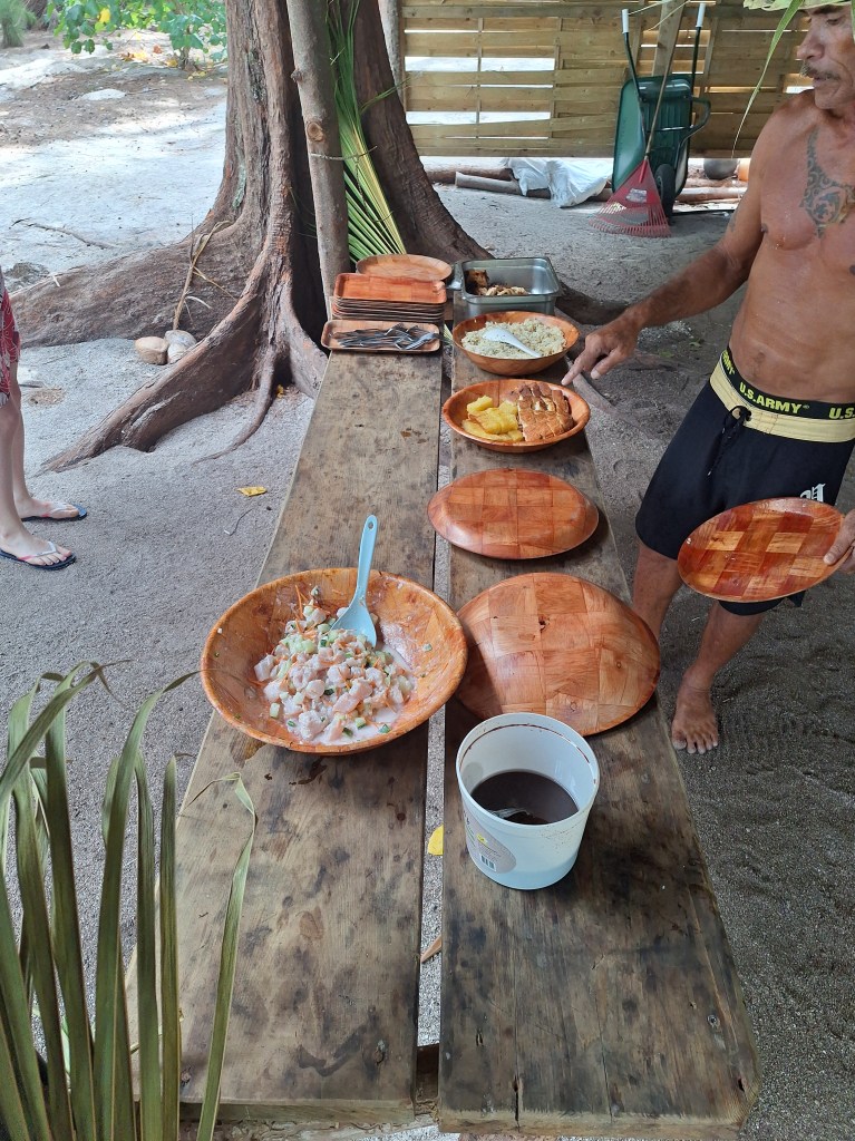 - Connaître les secrets de fabrication du fameux poisson cru au lait de coco, recette réalisée devant nos yeux, directement les pieds dans l’eau